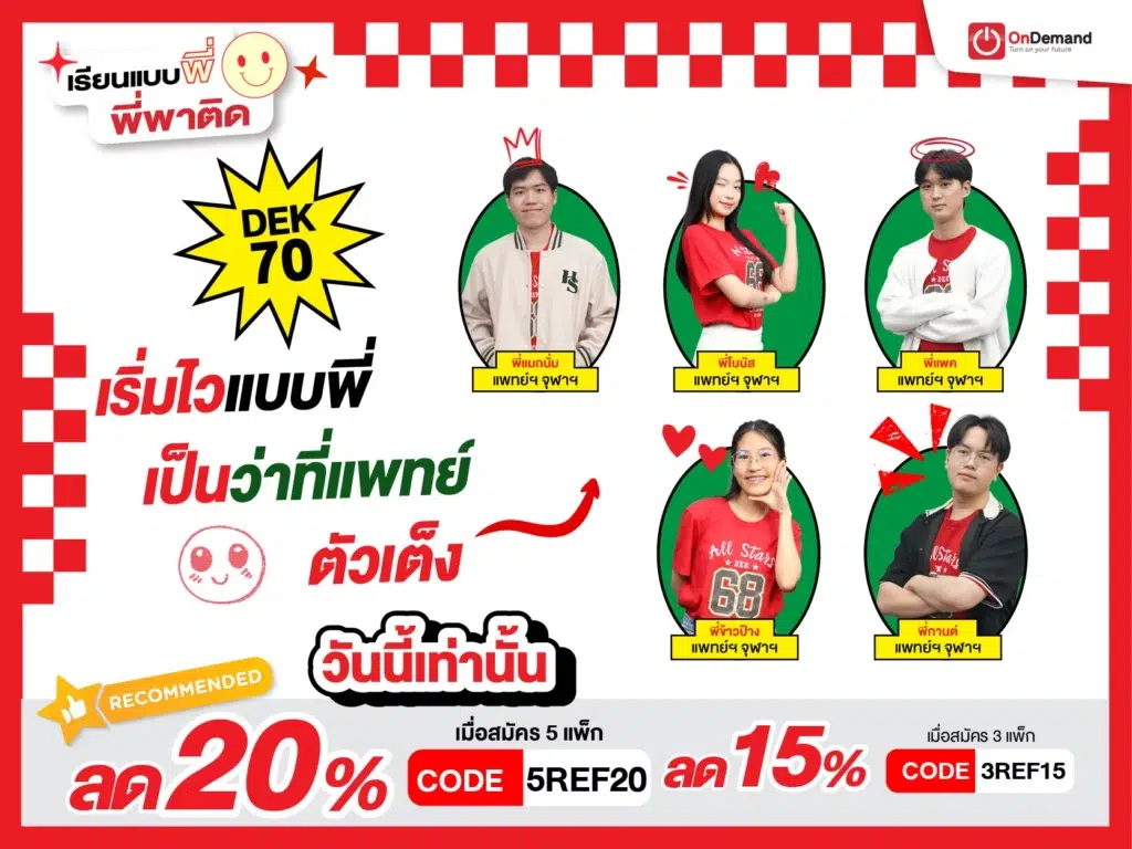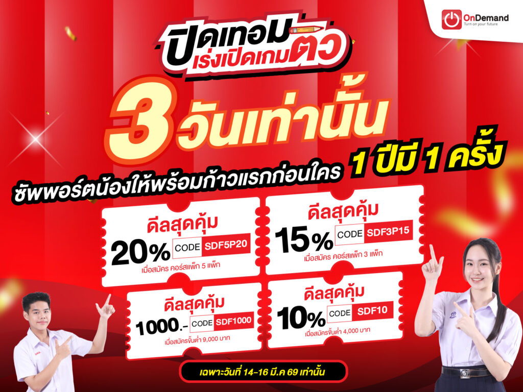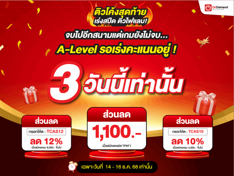 กับ OnDemand ที่คอร์สเรียนสดและออนไลน์ ครอบคลุมทั้งเสริมเกรด และ สอบเข้า ทุกวิชา