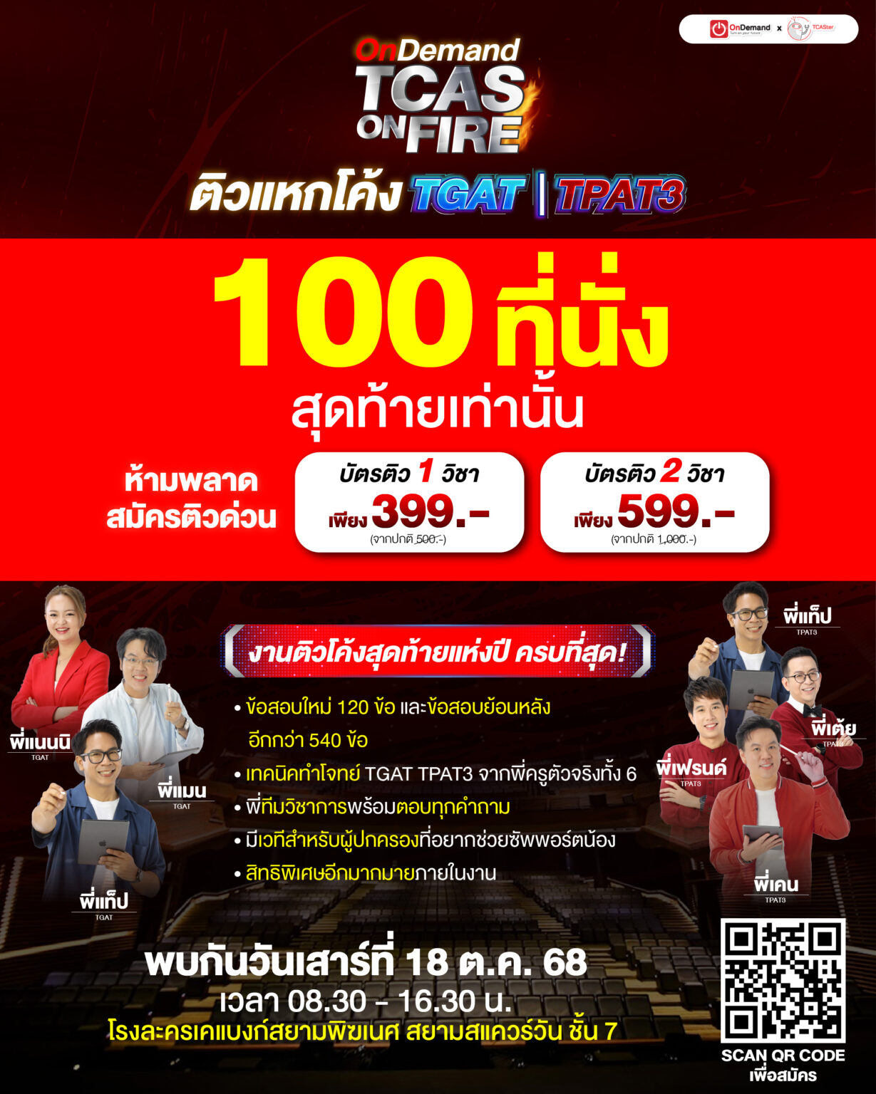 สุดท้ายนี้ อยากให้น้องๆ เชื่ออยู่เสมอว่า เราทำได้! เราทำได้มากกว่าที่เราคิด! หากคิดอย่างนี้ อย่างน้อยความคิดนี้ก็จะเป็นแรงให้น้องสู้กับมันและทำให้สำเร็จจนได้ อย่างไรก็ตามก็อย่าลืมหาเวลาพักผ่อนบ้างนะ ดื่มน้ำมากๆ นอนหลับอย่างเพียงพอ OnDemand จะคอยเป็นกำลังใจให้กับน้องเสมอนะ! 🥰