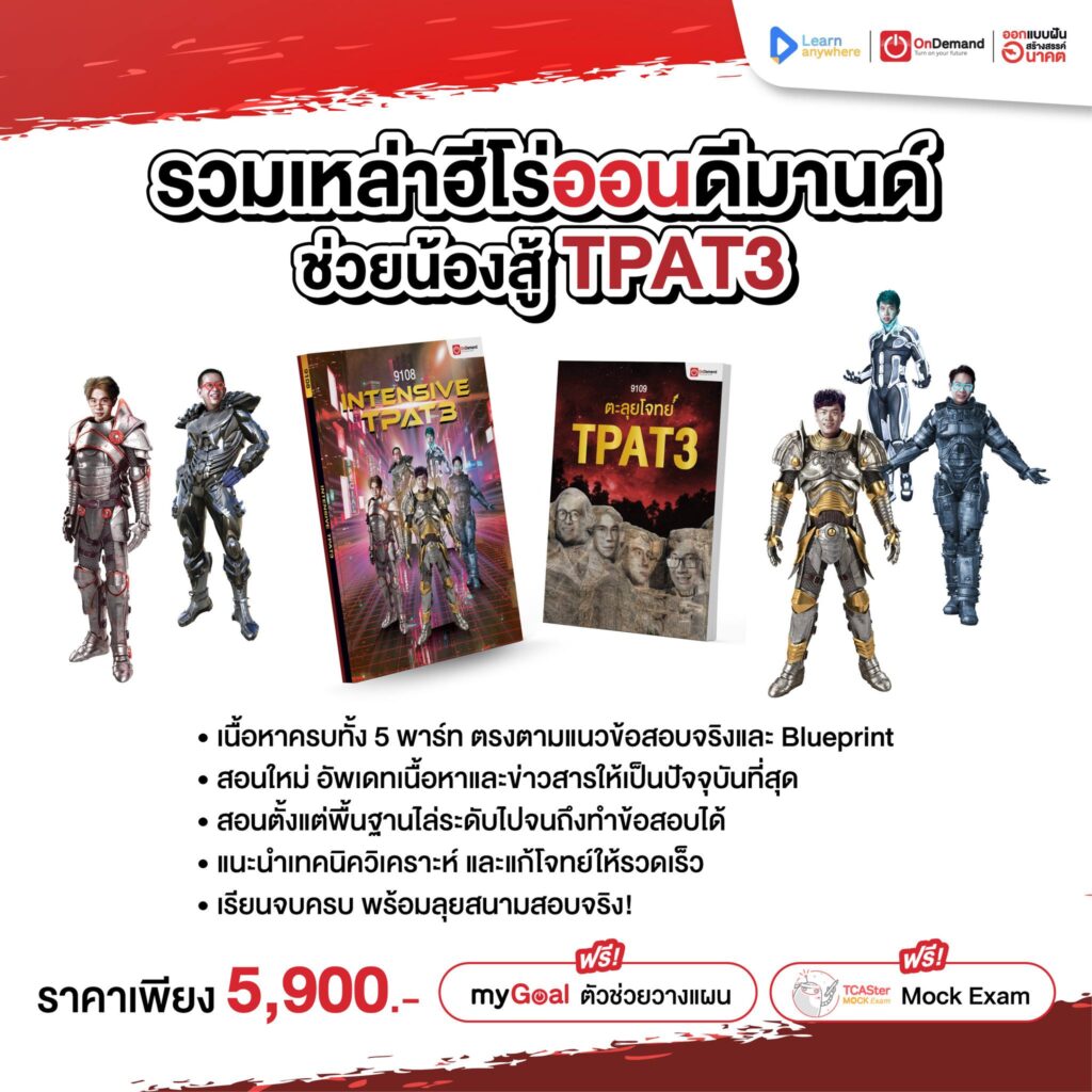 ⚙ ครบถ้วน จัดเต็มทุกพาร์ท⚙ แกะเนื้อหาและแนวโจทย์จาก Blueprint⚙ อัพเดทข้อสอบและเนื้อหาทันที.🎁 สมัครตอนนี้ รับฟรี 2 ต่อ1. สอบ Mock Exam TPAT3 ฟรี!!2. ใช้ฟีเจอร์ใหม่ล่าสุด My Goal ฟรี 🎯ช่วยวางแผนการสอบครบทุกสเต็ป.สมัครง่ายๆ ผ่าน ShopOnlineเรียนได้ทุกที่ทุกเวลาผ่านระบบ Learn anywhere*เงื่อนไขเป็นไปตามบริษัทกำหนด